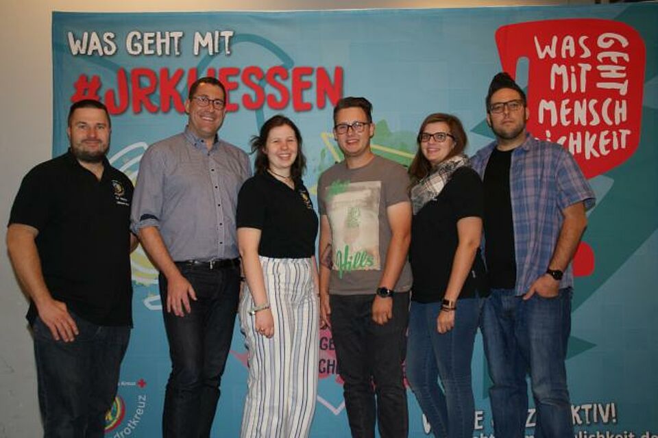 Ab sofort ist Robin von Gilgenheimb (3.v.re.) aus dem DRK-Kreisverband Rheingau-Taunus Mitglied in der JRK-Landesleitung. Der 21 Jährige ist langjährig engagiert im örtlichen Jugendrotkreuz und überträgt seinen Einsatz nun auch auf die Landesebene. Mit 32 Ja-Stimmen von insgesamt 43 Stimmberechtigten aus über 20 hessischen Kreisverbänden erhielt er ein klares Votum für seine neue Position.