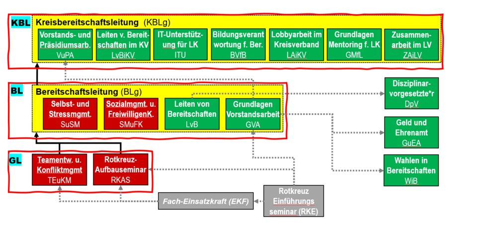 Der DRK-Landesverband Hessen e. V. ist Träger der Leitungskräfte-Ausbildung im Katastrophenschutz in Hessen. Dazu zählen unter anderem Bereitschafts- und Kreisbereitschaftsleitungen, K-Beauftragte und Vorstände. Auch allgemeine Mangement-Seminare, darunter das Rotkreuz-Aufbauseminar, werden angeboten.