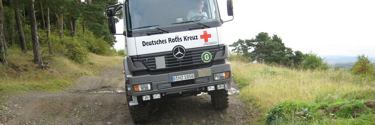 Foto: DRK-LV HessenDer DRK-Landesverband Hessen e. V. bietet Lehrgänge für das Fahren im Gelände für Spezialkräfte des Katastrophenschutzes an. Die für den Fachdienst Technik und Logistik (TuL) konzipierte praxisnahe Ausbildung wendet sich an Kradmelder, aber auch an Fahrer anderer Einsatzfahrzeuge wie Quads oder Unimogs.