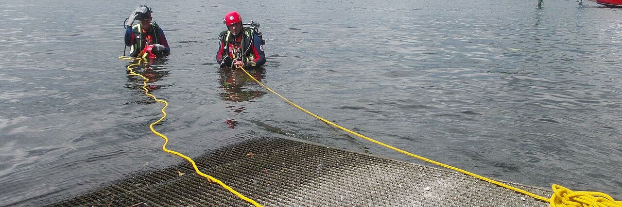 - Helferinnen und Helfer der Wasserwacht, die zum Befüllen von Atemluftflaschen mit Druckluft eingesetzt werden